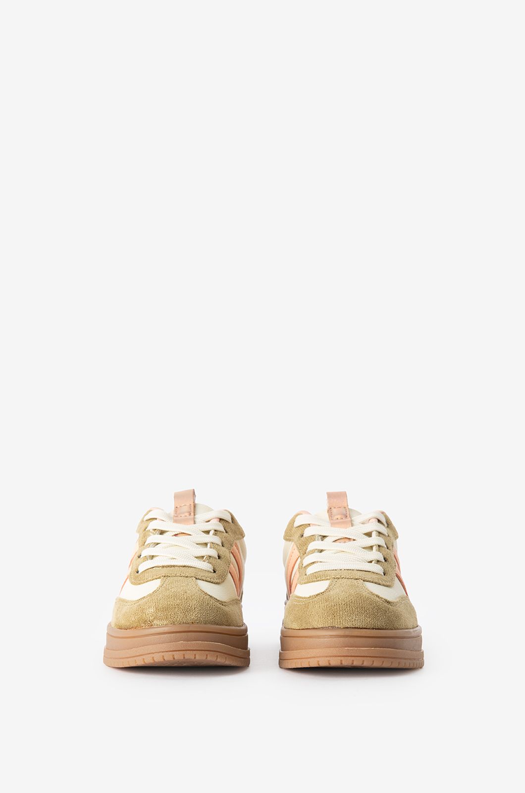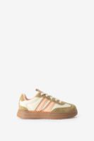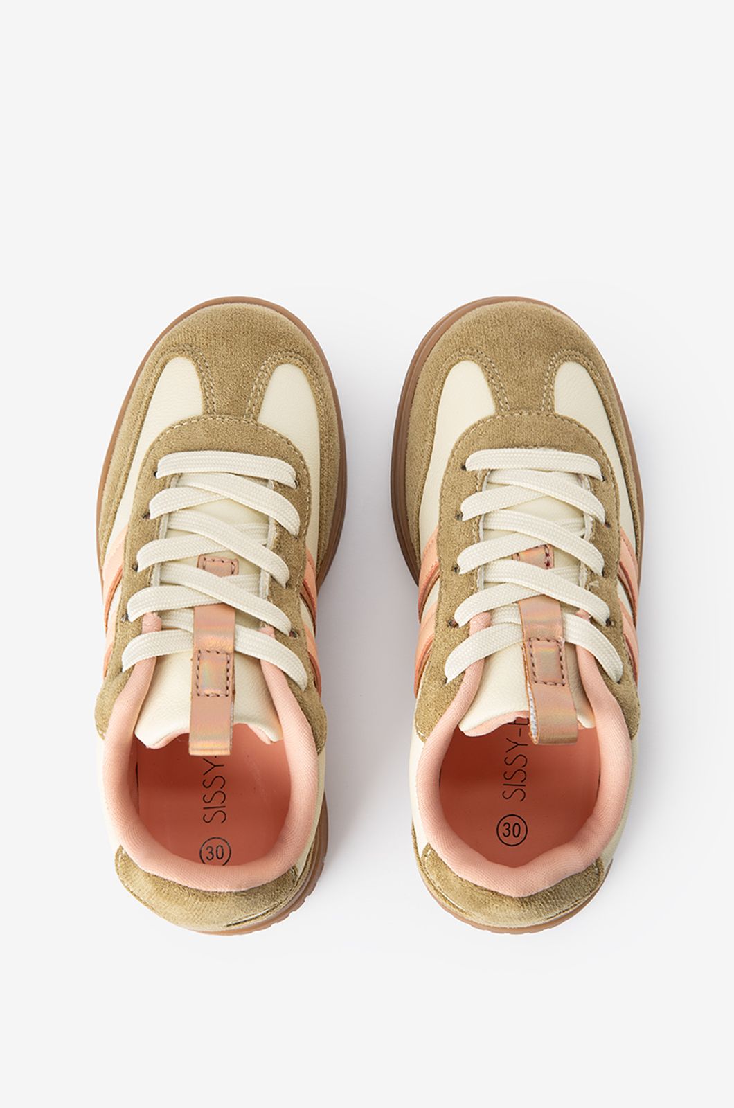 Rosafarbene Sneaker mit Streifen der Marke Sissy-Boy. Die Sneaker sind mit Akzenten in Rosa, Grün und Weiß abgesetzt. Die sportliche Sohle mit hohem Profil und die Schnellbindung machen den Look der Schuhe komplett. Material: 100% Polyurethan.