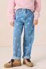Blaue Straight Leg-Jeans mit Herzmuster der Marke Sissy-Boy. Die Jeans hat ein 5-Pocket-Modell, einen geraden Schnitt und wird mit einem Knopf und einem Reißverschluss geschlossen. Material: 100% Baumwolle.