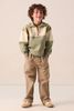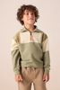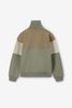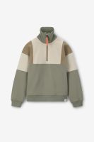 Grüner Sweater der Marke Sissy-Boy. Der Pullover hat einen hohen Kragen mit Reißverschluss, überschnittene Schulternähte, einen relaxed Fit und ist mit Colorblocking-Details in hellem Grün abgesetzt. Material: 100% Baumwolle.