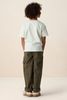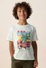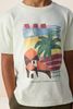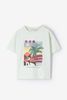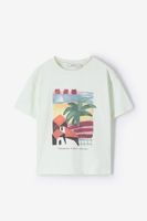 Hellgrünes T-Shirt der Marke Sissy-Boy. Das T-Shirt hat einen runden Ausschnitt, einen Relaxed Fit und einen farbenfrohen Palmenprint auf der Vorderseite. Material: 100% Baumwolle.
